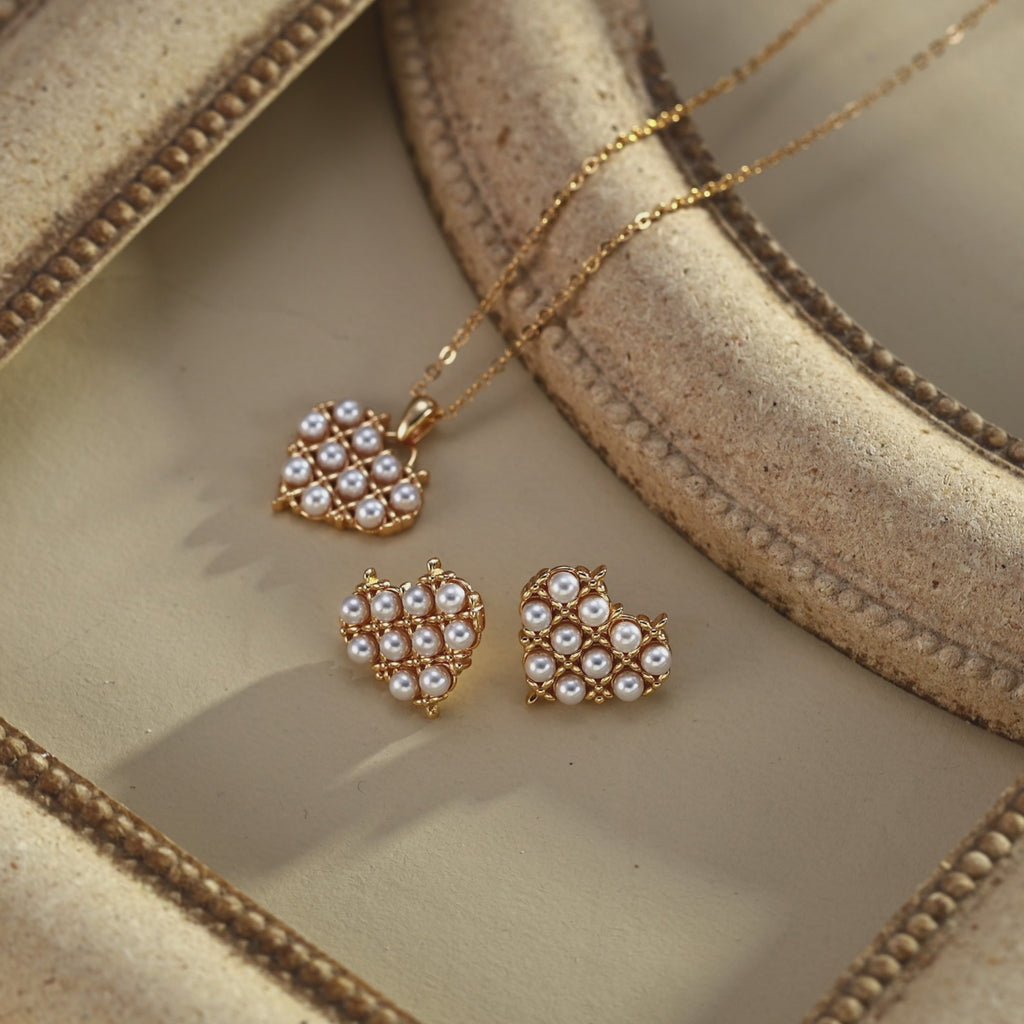 S925 silver retro design imitation pearl heart-shaped earrings