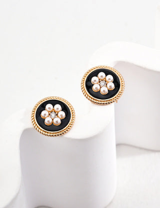S925 Silver Retro black agate natural pearl earrings