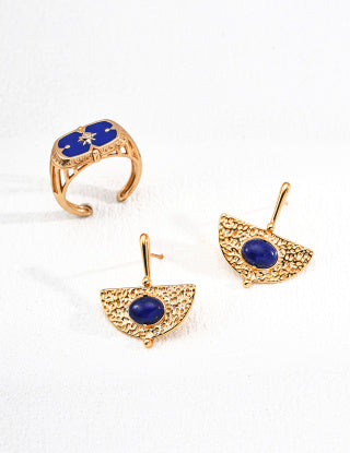 Natural lapis lazuli inlaid Vintage series Sterling silver earrings
