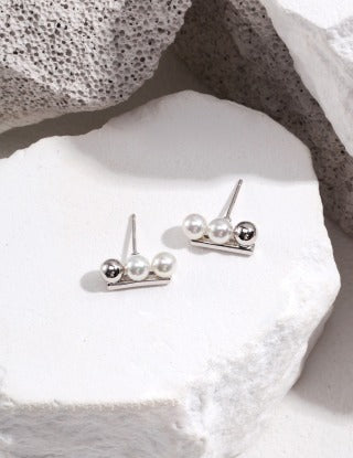 Pure silver beaded ear studs
