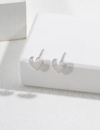 Pure silver heart-shaped stud earrings