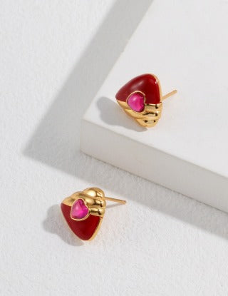 Heart-shaped small zircon stud earrings