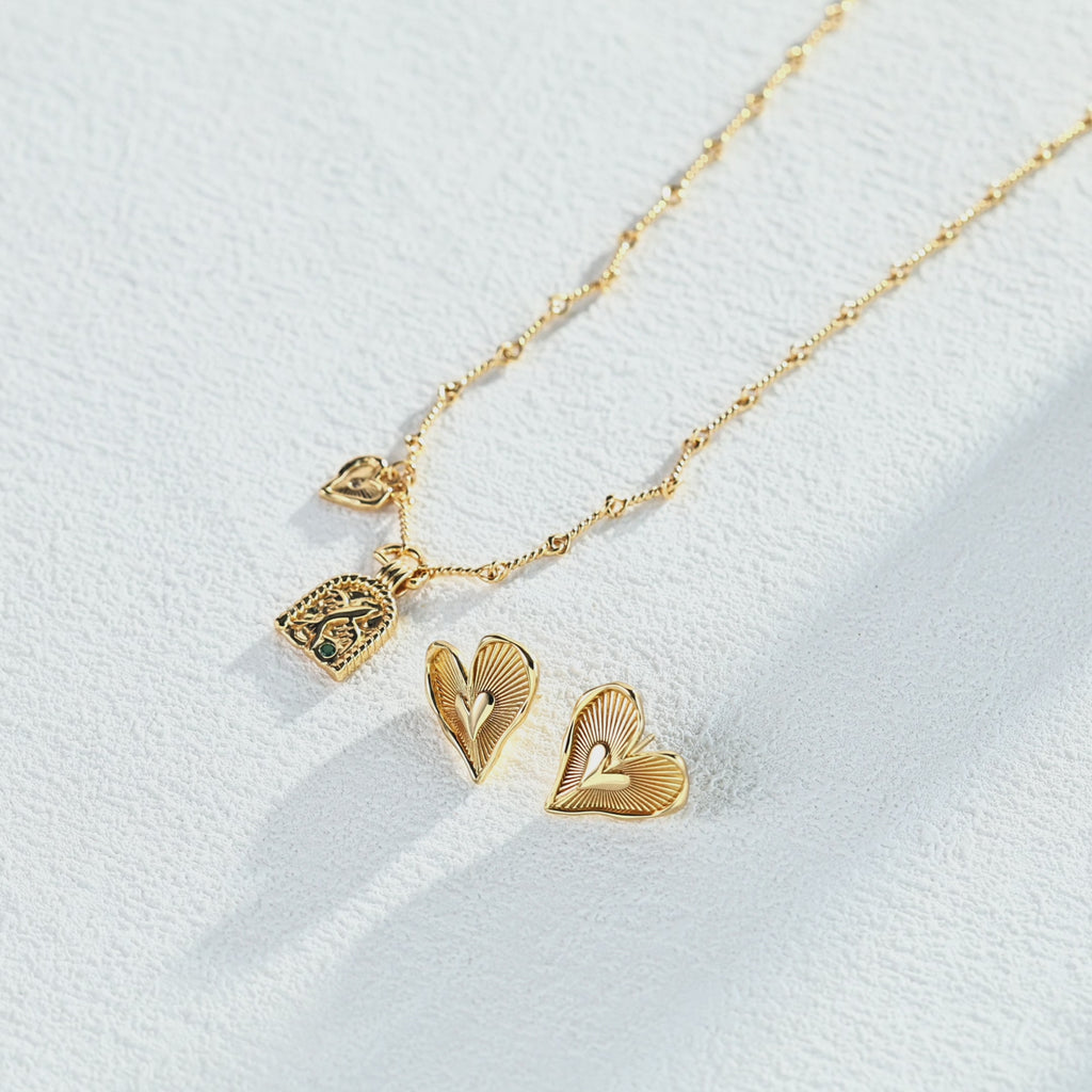 Heart-shaped small zircon stud earrings