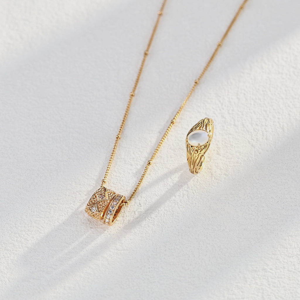 TagPlain silver versionMinimalist French style seriesNested chainSearch code: 103340Item No. : D0620-2ColorRetro goldSpecificationPure silver bracelet (adjustableSterling silver earringsMaterial: S925 silver/Zircon Color: Retro Gold Size: Chain length approximately 44cm+6cm Extension chain pendant height approximately 1.3*1cm