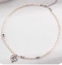 Pure silver natural pearl necklace (adjustable length)