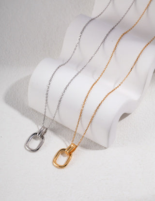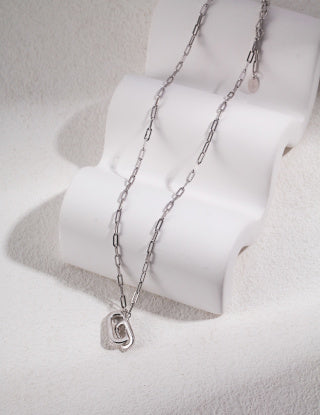 Sterling silver square double-loop interlocking chain necklaces