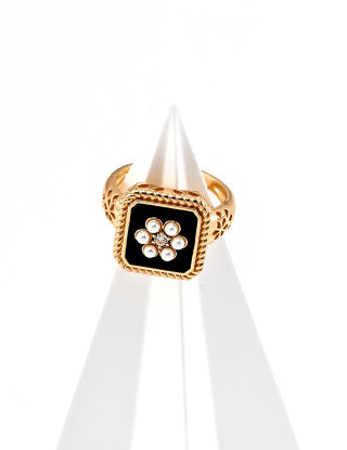 S925 silver simple black agate ring