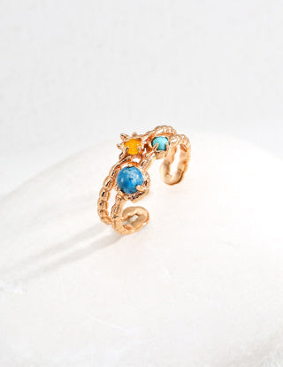 S925 Silver Retro synthetic turquoise topaz apatite ring