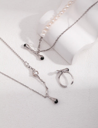 Natural lapis lazuli inlaid Vintage series Sterling silver necklace (adjustable length)